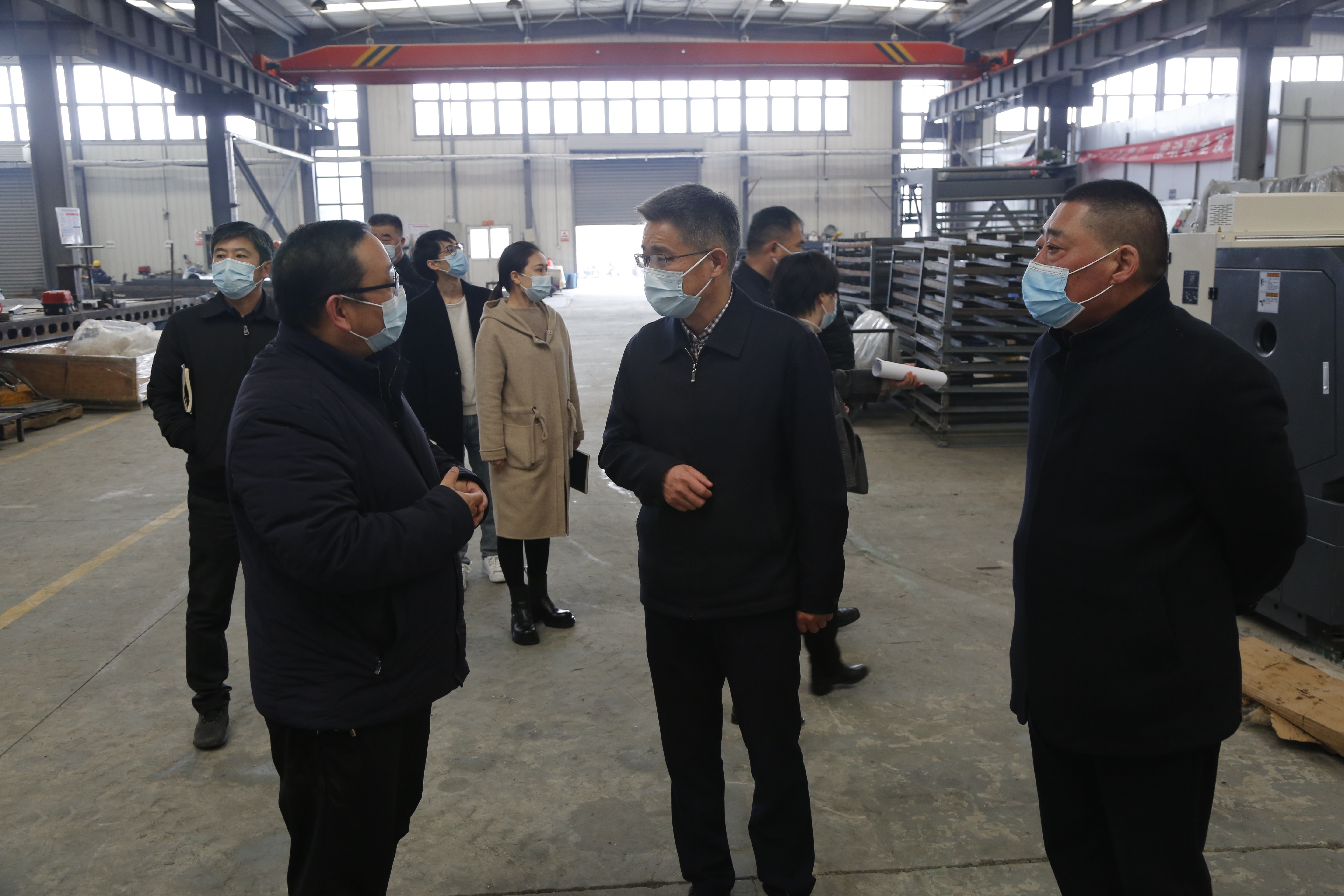 仲伟涛一行先后来到海宏智能科技公司厂房、工业物联网智造成套设备项目工地、LNG罐箱制造车间、板桥生产基地、连云新城承建项目工地、228服务区生产基地、石梁河生态修复及清水进城行动项目工地。每到一处,仲伟涛一行都详细了解各重点项目复工复产及项目推进情况,听取各单位工作情况汇报,检查各项目现场疫情防控和安全生产措施落实情况。