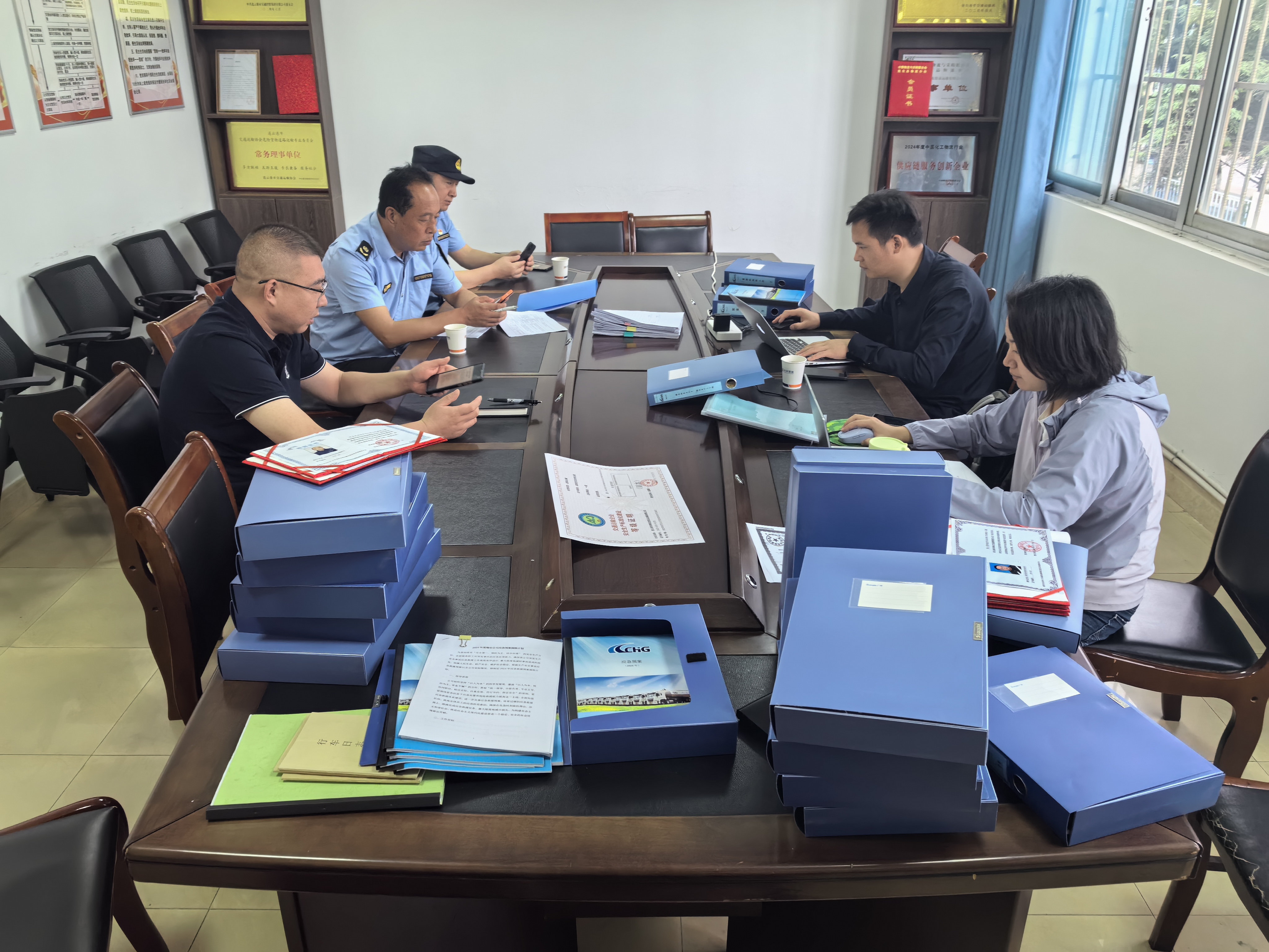 检查组首先听取了许安庆关于翔安公司近期安全工作的汇报,检查组对照《道路危险货物运输企业安全生产检查记录表》、通过现场检查的方式,对翔安公司安全生产标准化管理体系16项基础台账进行了逐项检查、现场抽查危险品车辆技术状况及随车应急物资配备情况,并到信息中心调看了车辆车载监控系统使用情况、报警处置情况,电子运单填报情况以及行车前测评情况进行了检查,就安全生产工作情况进行点评,并给予了的意见建议。