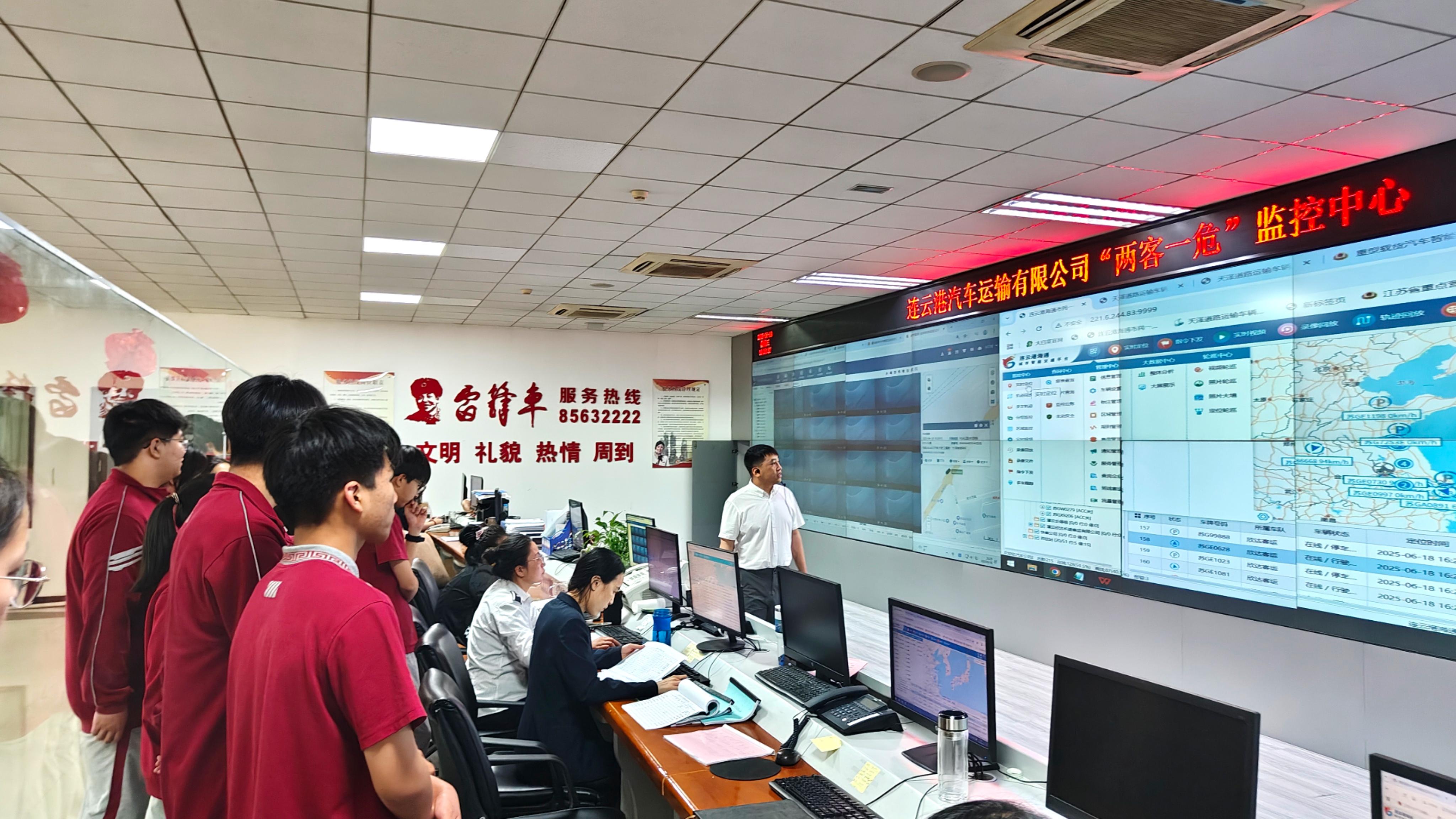 随后,同学们走进汽车公司“两客一危”监控中心。巨幅电子屏幕上,危化品运输车辆的实时轨迹、驾驶员状态、车辆运行参数等数据动态更新,智能预警系统不断闪烁提示。中心负责人向同学们展示了先进的监控设备和智能化管理系统,详细介绍了如何通过实时监控、数据分析等手段,对危化品运输车辆进行全方位、全过程的动态监管,确保运输安全。同学们直观地感受到了科技在危化品安全管理中的重要作用,也深刻认识到安全管理工作的严谨性和重要性。