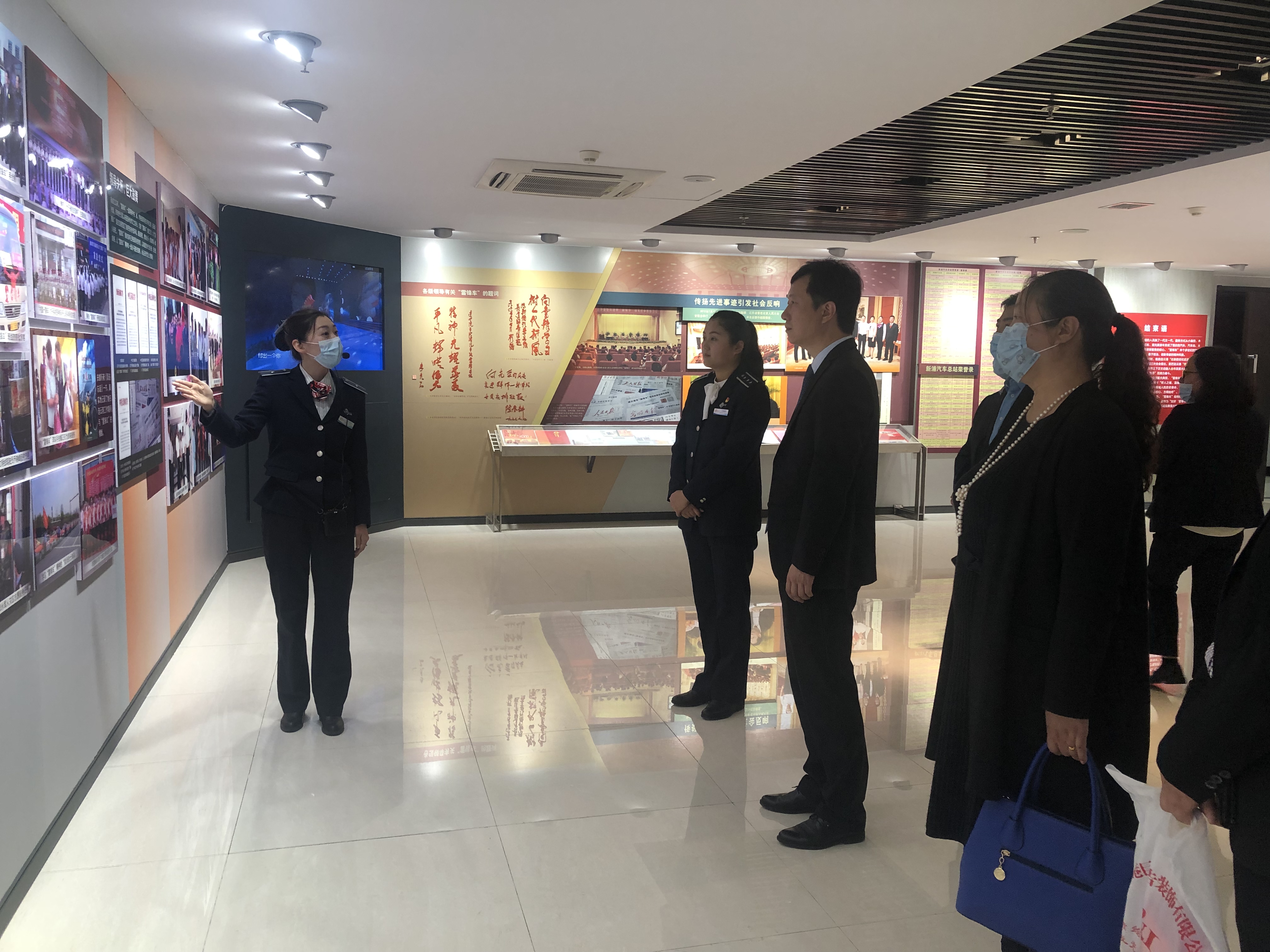 “雷锋车”事迹陈列馆,参观者一行在讲解员带领下边走边听,详细了解了“雷锋车”组半个多世纪的感人事迹,感受几代“雷锋车”手以行动践行承诺、以奉献谱写大爱的崇高精神。