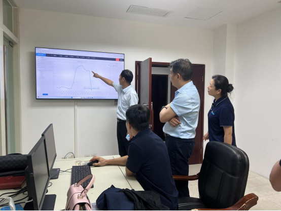 调研现场袁军一行人听取了港嘉项目部工作人员对市行政中心AB楼能源管理平台的能耗分析、配电监控、节能控制三大主要模块的功能介绍。详细了解了该平台能够根据管理平台出具的用能分析报告,为市机关单位推行公共建筑能耗限额、开展能耗管理、节能诊断和碳排放核算等工作提供有力的依据,实现“数据节能”;通过现场派驻资深节能运维管理工程师精准运维,并及时对项目设备设施进行故障排查,为项目提供优质后勤保障服务,实现“管理节能”。