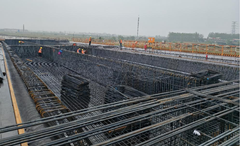 时值项目建设黄金周,为全力推进工程建设进度,按期完成道路改建通车,瀛洲南路改造及南延工程(一期)施工现场仍然是一片热火朝天的景象。工人们抢工期、赶进度、保安全,奏响钢筋与混凝土的交响乐章。目前已基本完成204国道南侧现浇箱梁底板、翼板的全部安装,第四联二、三两跨已预压完成,钢筋班组正在为其铸就“钢筋铁骨”。